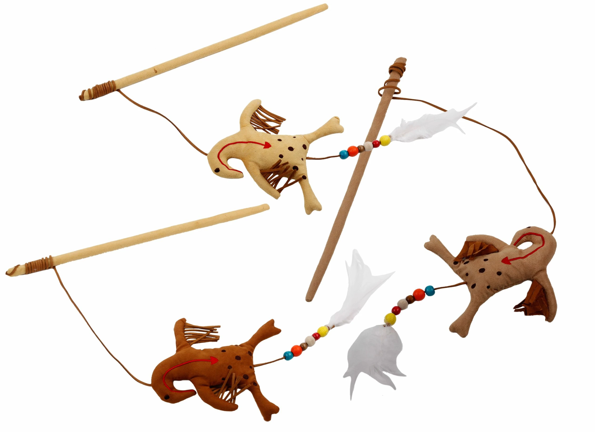 Met deze hengel blijft uw kat vangen. Het visje aan de hengel maakt een knisperend geluid en daagt uw kat uit door zijn mooie veren staart, franjers en balletjes.
